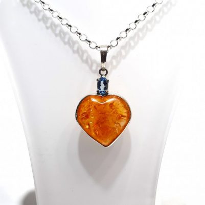 Citrine heart and Blue topaz pendant